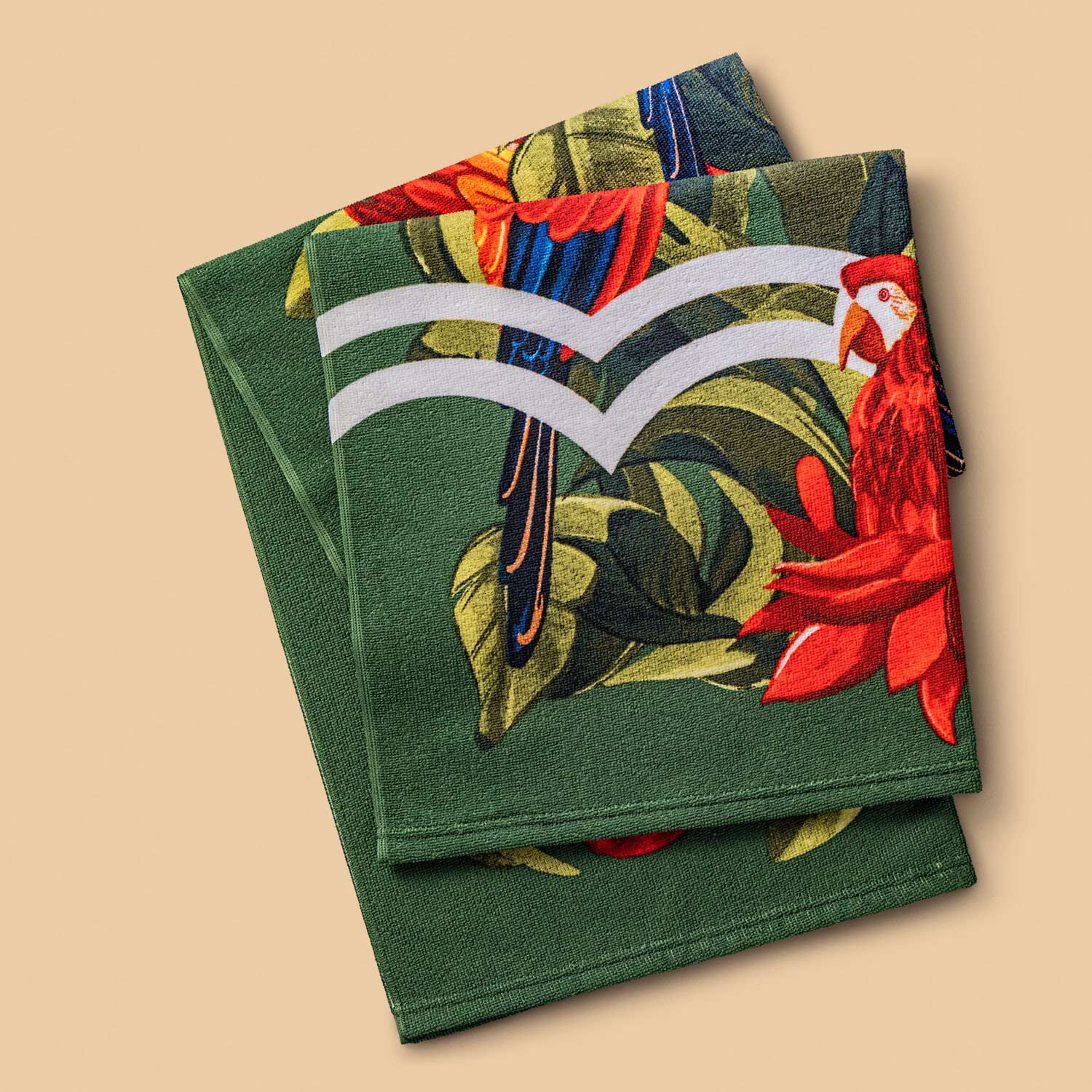 produzida com PET reciclado, a toalha tem toque aveludado e alta absorção, ideal para praia e piscina.