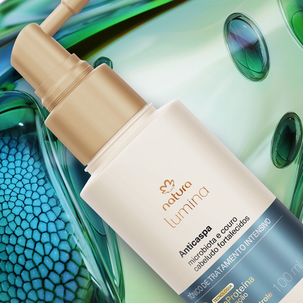 A linha para Tratamento Anticaspa de Lumina mudou! São novas embalagens e ainda mais tecnologia para cuidar do seu cabelo. Com BioProteína Tripla Ação e Ativo Dermocontrole, esse sistema deixa o cabelo até 99% livre da caspa sem ressecar e promove o reequilíbrio da microbiota para controle da caspa por mais tempo**. O Tônico de Tratamento Intensivo Anticaspa Lumina é um passo essencial nesse ritual, com fórmula que promove uma transformação inteligente do couro cabeludo, atuando por completo nas causas e sintomas da caspa.